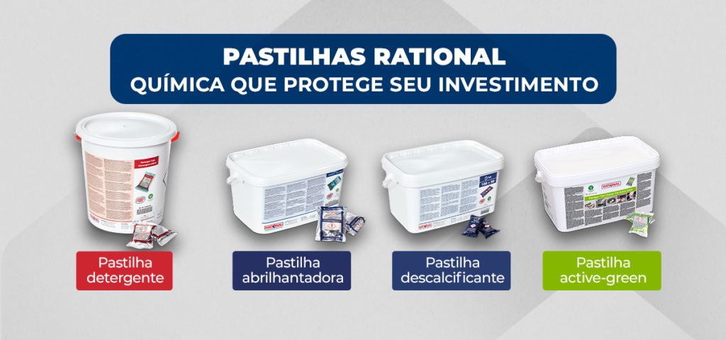 Em cozinhas profissionais que operam em escala industrial, o ciclo de limpeza nunca é apenas sobre higiene. É sobre preservação de ativos, eficiência energética e conformidade regulatória. As pastilhas Rational representam muito mais que produtos de limpeza, são componentes essenciais do ecossistema de cocção inteligente que garantem o retorno sobre investimento em equipamentos premium.